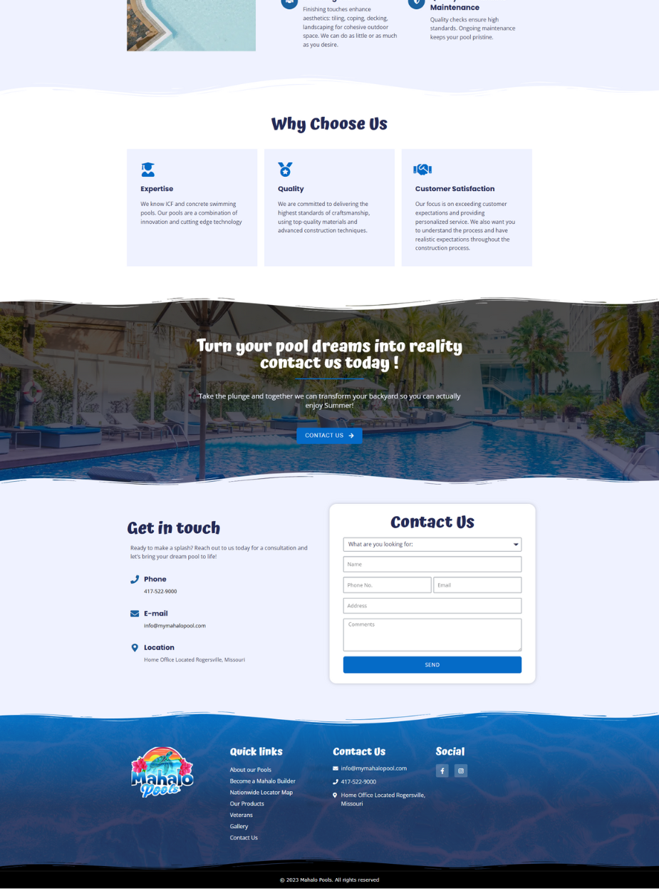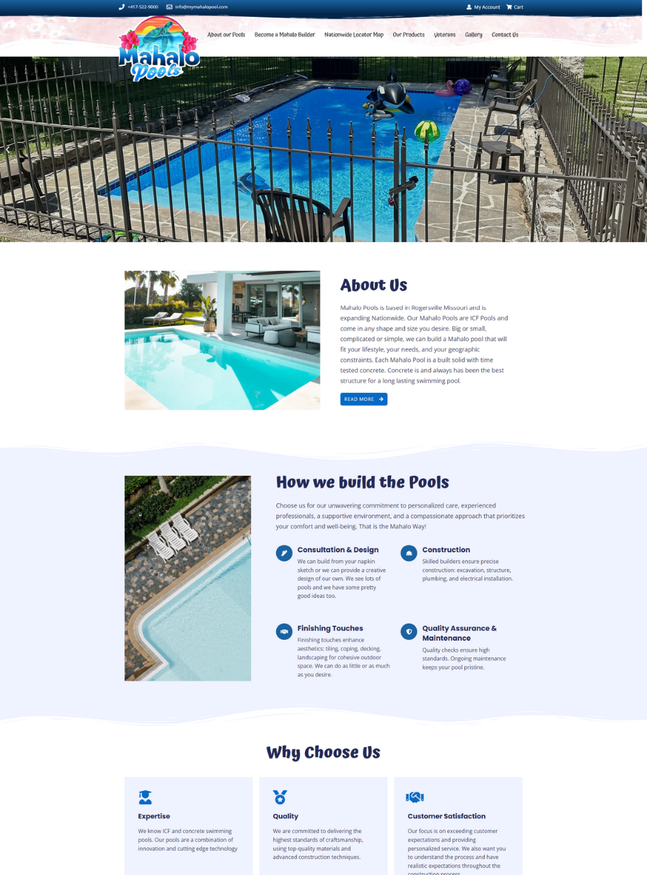 I was responsible for the frontend development of the Mahalo Pools website, ensuring a visually appealing and user-friendly interface that effectively showcases their custom pool designs and services. Additionally, I implemented SEO optimization strategies to enhance the website’s visibility and attract potential clients seeking premium pool construction services.